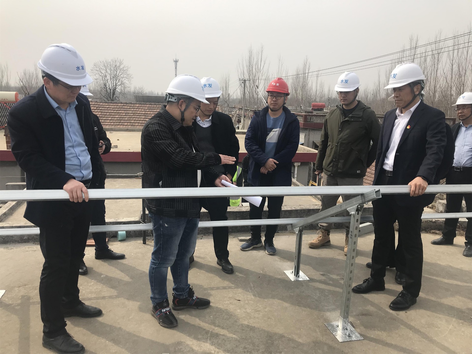3月10日,水发能源安全检查组对水发新能源公司泗水县分布式光伏建设项目开展安全生产督导检查。本次检查分施工现场检查及资料检查,检查组首先检查了岔河村、西河马村、东河马村屋顶光伏施工现场、重点检查了光伏组件支架安装、光伏发电板铺设、高处作业、动火作业防护情况。