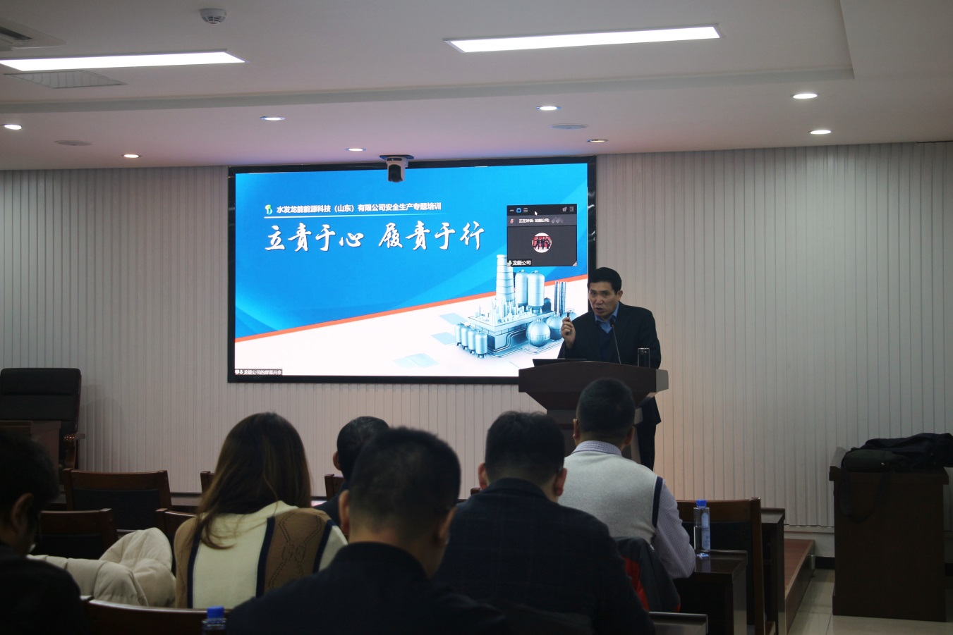 按照能源集团年度安全计划,为深入开展消防宣传月活动,推进四季度安全教育培训,贯彻落实新安全生产法,牢固树立安全发展理念,11月25日,水发能源集团安委会联合龙能公司举行专题培训活动,特邀山东省安全生产专家郭勇做了“立责于心、履责于行”的授课。