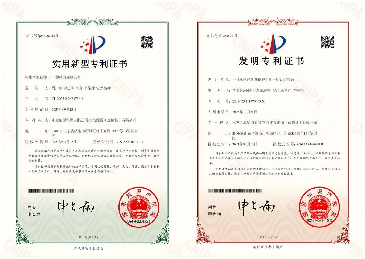 喜报!水发能源通榆公司实用新型专利加一、发明专利再加一