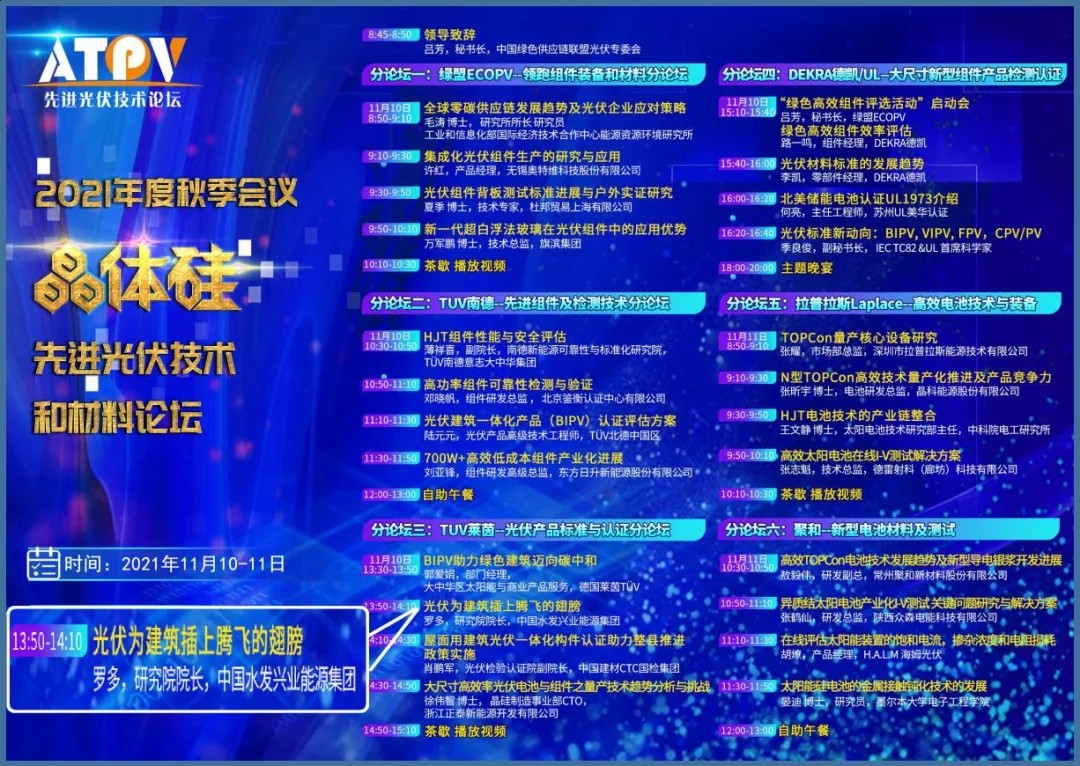 11月11日,由中国绿色供应链联盟光伏专委会(ECOPV)指导的2021年度“晶体硅先进光伏技术和材料论坛(ATPV)”秋季会议在无锡落幕。